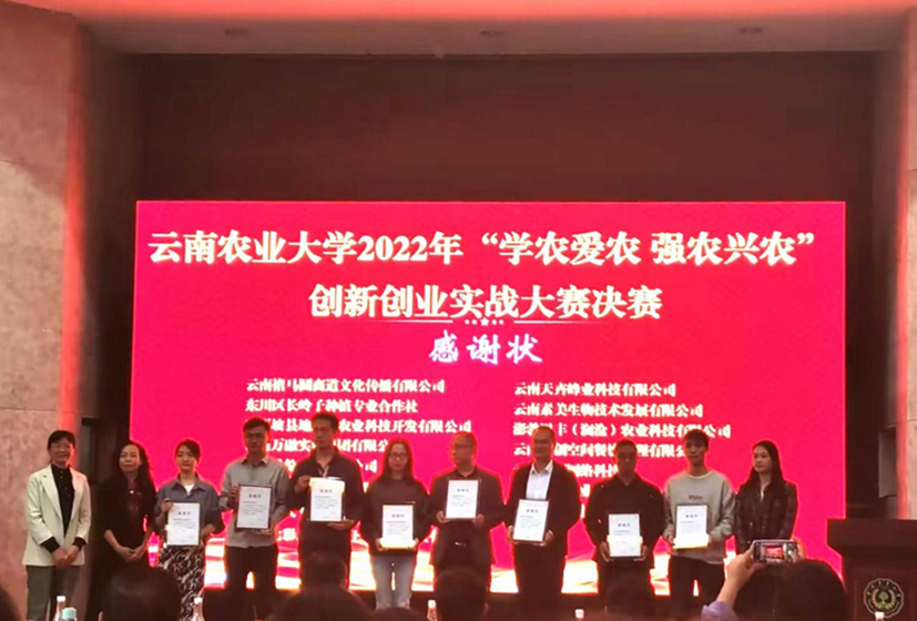 为响应党的二十大关于大众创业万众创新的指导精神,鼓励同学们积极通过创新创业实现自身价值,实现校企结合、产研结合。公司于2023年3月29日在西校区图书馆举办“学农爱农强农兴农”的创新创业实战大赛决赛暨颁奖仪式。公司“深藏不漏队”与“绝队”通过层层角逐取得了优异成绩,“深藏不漏队”共8名队员,由邵建辉老师指导,荣获铜奖。“绝队”6名队员由李凡老师指导荣获优秀奖。李永和董事长为参赛队颁发了奖状并送上祝福。