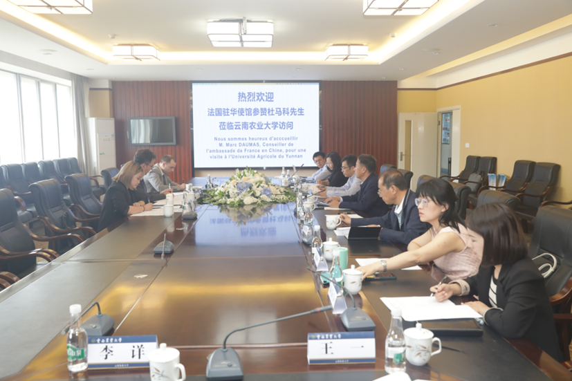 会上,魏红江副董事长代表公司对法方代表团的来访表示了热烈欢迎,介绍了公司办学的主要优势、亮点和成绩,并对双方未来的合作表达了积极的期望。农业生物多样性应用技术国家工程研究中心副主任黄惠川向法方嘉宾详细介绍了“中法国际联合实验室”的主要研究工作进展及新一期合作计划等。