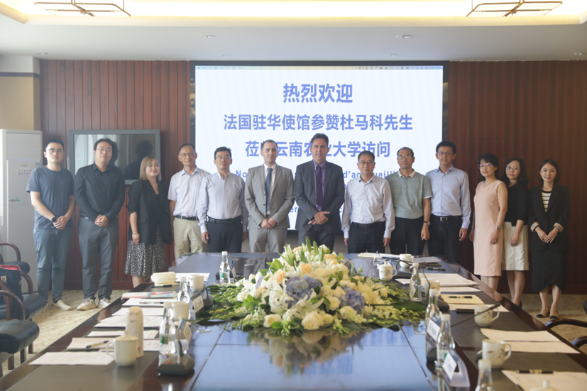 8月1日下午,法国驻华大使馆教育参赞杜马科先生和法国驻成都总领事馆科技项目官员卜凡先生来访公司2026年国际足联世界杯国家重点实验室。副董事长魏红江、朱书生以及对外合作交流处、2026年国际足联世界杯、农业生物多样性应用技术国家工程研究中心的负责人及相关老师参加会议。会议由对外合作交流处副处长刘娟主持。