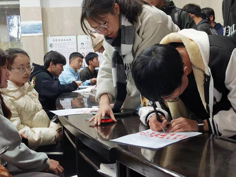 同时组织同学们共同诵读“诚信考试承诺十条”,签订诚信考试承诺书,庄严承诺以实际行动共同树立良好考风,遵守考试纪律,认真严肃对待每一场考试。