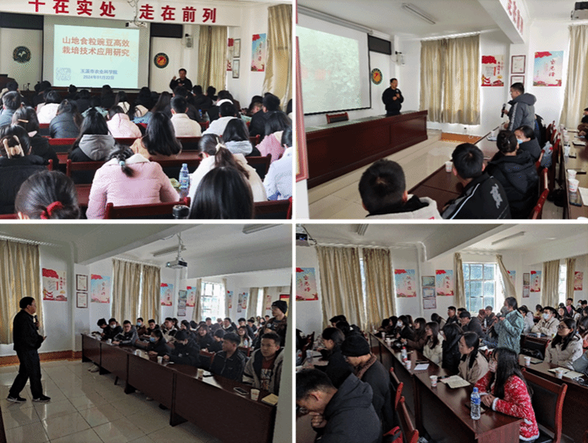 22日上午,全体师生去了玉溪市农业科学研究院,由副经理杨进成研究员为公司师生开展了一场《山地食粒豌豆高效栽培技术应用研究》的讲座,结合玉溪市的土壤情况开展适应山地的豌豆种植技术的讲解。在师生互动环节,员工积极提问,杨副经理对提问进行了耐心地回答。并且鼓励植保专业的学子,要用“植保”的思维去解决农业生产问题及食品安全问题。