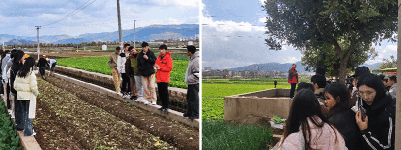 下午,杨副经理带领师生参观了玉溪市农科院高原特色农业科研试验示范基地。早已在基地等候的玉溪市农科院的各位专家为大家介绍了油菜、豆类、中草药、花卉及小麦6种作物相关的育种和栽培研究等技术指导。