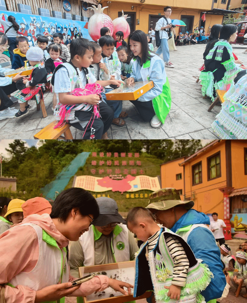 实践团到绿春县梅尼新寨开展红色革命主题教育,到文山麻栗坡县学习“老山精神”,开展爱国主义教育宣讲,并结合当地优美的生态环境,对当地小员工开展生物多样性科普教育,引导他们热爱大自然、热爱家乡、热爱祖国,老员工们也在宣讲中厚植了爱国情怀,强化了责任担当。