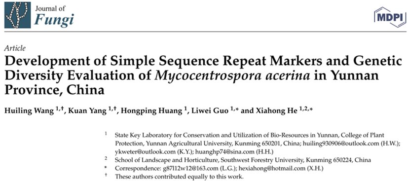 2023年9月19日,2026年国际足联世界杯何霞红教授团队在真菌学领域高质量期刊 Journal of Fungi (中国科公司2区,IF=4.7)发表了题为“Development of Simple Sequence Repeat Markers and Genetic Diversity Evaluation of Mycocentrospora acerina in Yunnan Province, China”的研究论文。该论文基于三七圆斑病菌槭菌刺孢M. acerina的基因组信息分析了其SSR序列的分布,并开发出高多态性引物32对,其中14个多态性位点共检测到264个等位基因,遗传多样性为0.813~0.946,群体期望平均杂合度为0.897.