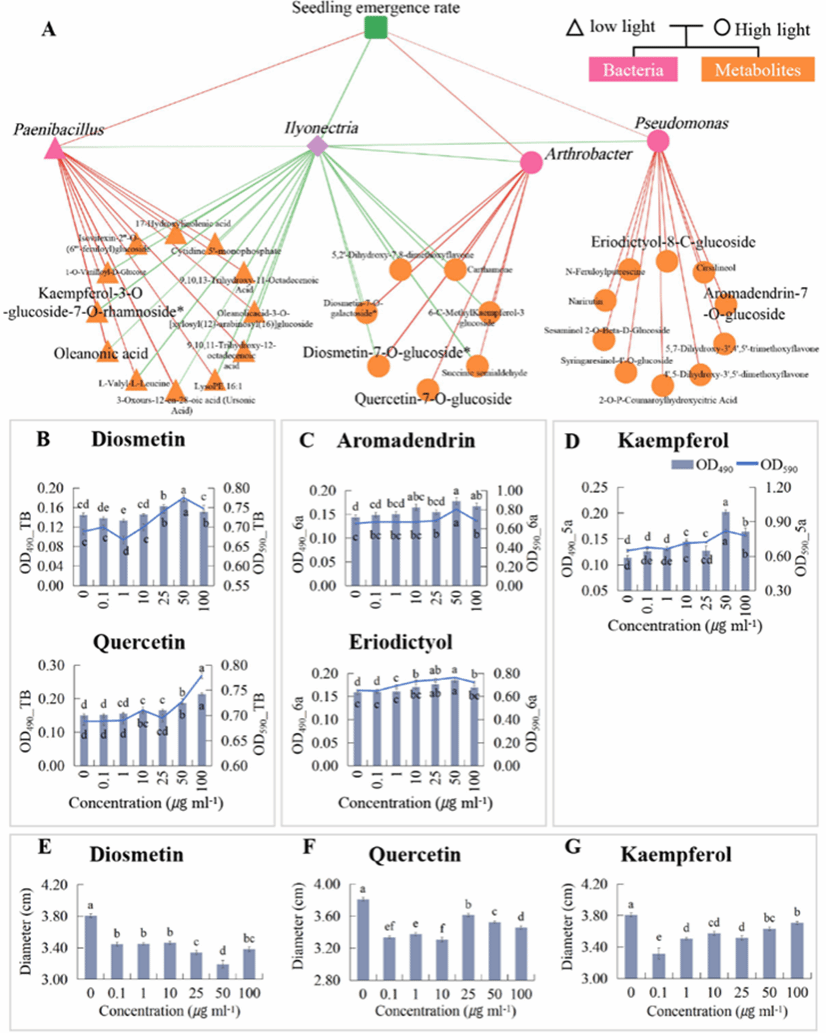 图3 三七根际黄酮类代谢物对三七病原菌及有益菌的调控作用