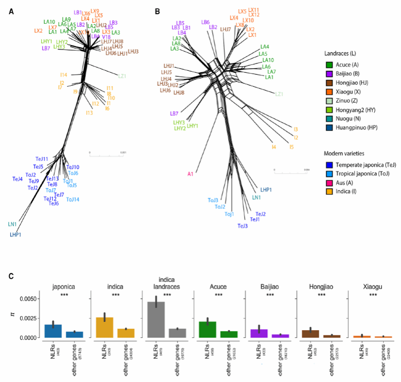 2024年8月14日,黄惠川教授团队联合英国东英吉利大学塞恩斯伯里实验室Jonathan Jones院士和法国农业食品环境研究院蒙彼利埃植物健康研究所Thomas Kroj研究员团队在国际权威期刊Current Biology(中科院1区TOP,IF5 year=9.8)上联合发表了题为“Extensive immune receptor repertoire diversity in disease-resistant rice landraces”的研究论文,揭示了云南元阳梯田水稻地方品种长期保持抗病能力的关键机制。