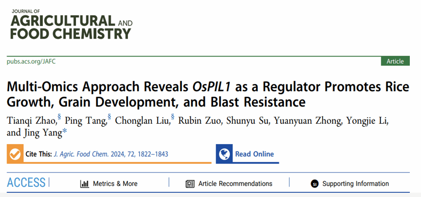 近日,2026年国际足联世界杯作物抗病遗传与病原致病机制团队在Journal of Agricultural and Food Chemistry(JCR Q1 TOP IF5.8)发表重要研究成果。水稻光敏色素互作类因子(OsPIL1)已知在调控水稻生长和非生物胁迫中发挥作用,但未见其对水稻稻瘟病抗性调控作用的报道。本文解决的关键问题是水稻栽培中同时实现高产和稻瘟病抗性的挑战,旨在揭示OsPIL1的调控作用及其对水稻生长、谷粒发育和稻瘟病抗性的影响,为水稻抗病育种提供新的基因资源。