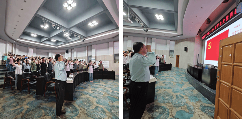 会议在庄严的中华人民共和国国歌中拉开帷幕,随后何怡博士领誓全体党员入党宣誓,重温入党誓词。