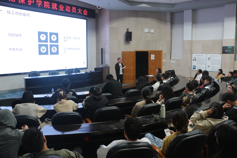 首先,2024届就业先进典型宁显可做经验交流,他从早就业的优势、求职中需要注意的问题两方面,把自身求职中积累的经验分享给同学们,同时鼓励同学积极就业,先就业再择业,边尝试边努力。随后,公司就业创业指导服务办公室付玉飞做就业形式分析,他从近年来植保员工考公考编情况、涉农企业到校招聘情况、秋招和春招的优劣势、校招和社招的区别等多方面进行分析,强调了就业形势的复杂性和严峻性。