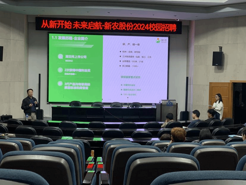 首先,浙江新农化工股份有限公司人力资源总监张瑜琪向应聘同学介绍了公司的发展概况,并对见习区域经理、营销储备这两个主要招聘岗位进行了详细介绍。随后,针对同学们的疑问进行答疑解惑。紧接着,分别是简历投递和面试初试环节。现场分为3个面试场地,分组对同学们进行了初试。