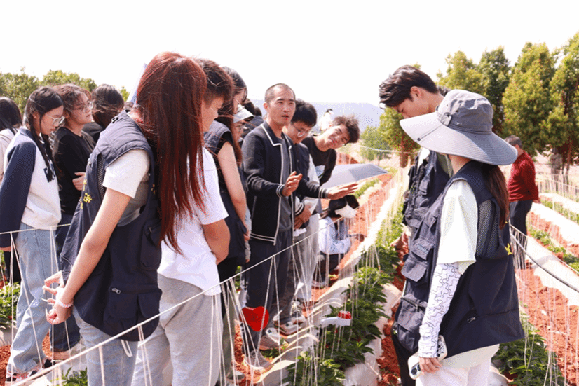 最后,石林彝族自治县经济作物站站长黄兴龙、石林德志农业发展有限公司总经理宋鹏带领师生来到石林德志农业发展有限公司参观人参果种植基地,深入田间地头,并就作物引种、差异化市场供应等方面进行了交流。