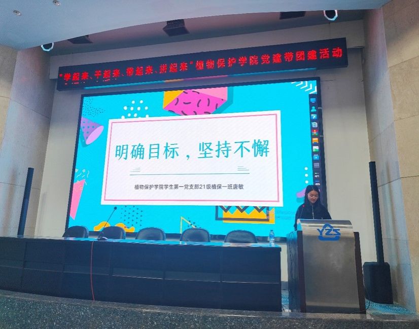 之后,支部党员袁雨和唐敏分别以“学风建设 关乎你我”、“明确目标 坚持不懈”为主题分享了自己的学习经验,2022级、2024级植保1班员工代表分享了班级学风建设成果。他们表示,学习是一场持久战,只有找对学习方法,才能达到高效学习的目的。要带领团员青年培养文明的生活和行为方式,发挥自我的主动性和创造性,努力建设和谐的学习氛围和学风环境。