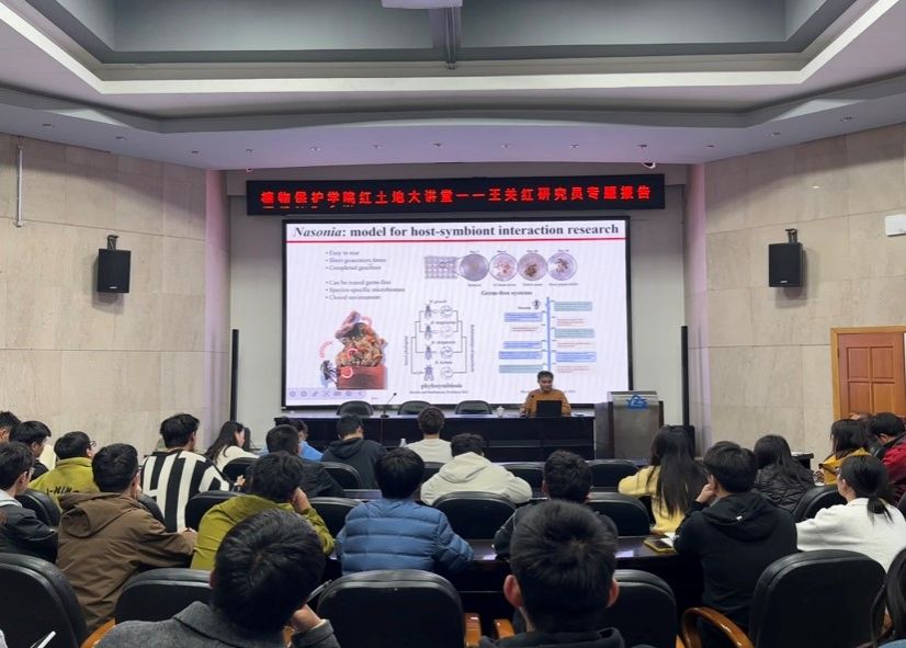 王关红研究员在讲座中详细讲述了研究团队利用寄生蜂和蚊虫开展微生物与宿主互作以及微生物和基因编辑对蚊虫防控新技术研发等方面的工作,为昆虫微生物组及蚊虫防控研究提供了新的思路。