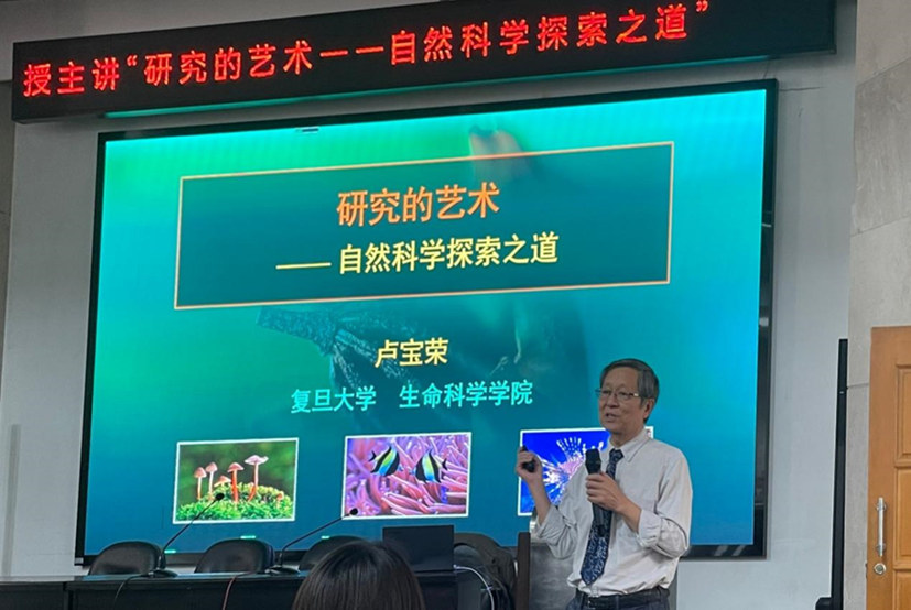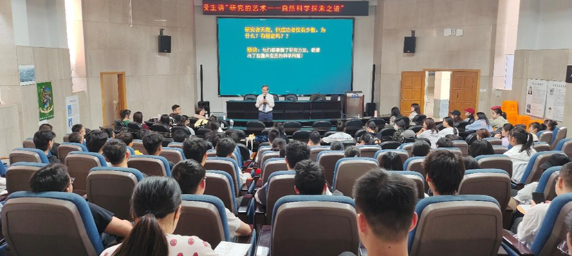 卢教授首先通过“什么是研究”这一问题引入,引导同学们深入思考,之后通过科学研究“三部曲”的分享激发同学们科学思维与艺术思维的碰撞,从而揭示讲授的主题:了解研究的艺术——自然科学探索之道。讲授层层递进,同学们渐入佳境。