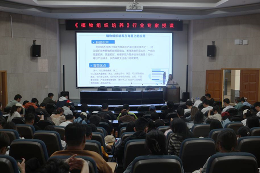 为进一步加强理论教学与课程实践之间的联系,强化本科生理论学习与实践认知,4月22日上午9点30分,《植物组织培养》课程邀请云南锦科花卉工程研究中心有限公司副经理何琼来到公司报告厅,为2021级植物保护专业本科生授课。
