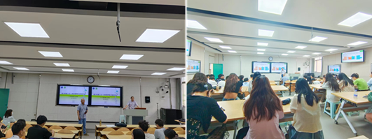 在课上,丁老师以“三位一体植物医学新体系”为主题,围绕什么是植物医学、植物医院、植物医生三方面分别展开,先是让同学们了解植物不健康的症状、植物生存状态、植物病因观和植物健康管理,让同学们深入思考染病植物“如何救?谁来救?谁来管?”从而理解为什么新时代需要植物医学、植物医生和植物医院。最后,丁老师还介绍了植物医学的发展历史、知识体系等。让同学们认识到植物医学长期以来都是我们植物和人类所需要的。丁老师不仅注重授课内容,而且非常善于运用各种教学方法来激发同学们的兴趣,在上课过程中,不断与同学们展开互动交流。讲座的最后,2021级动植物检疫班的同学们踊跃提问,向丁老师请教更多关于植物医学、植物医生、植物医院、植物健康管理等新知识、新理念。