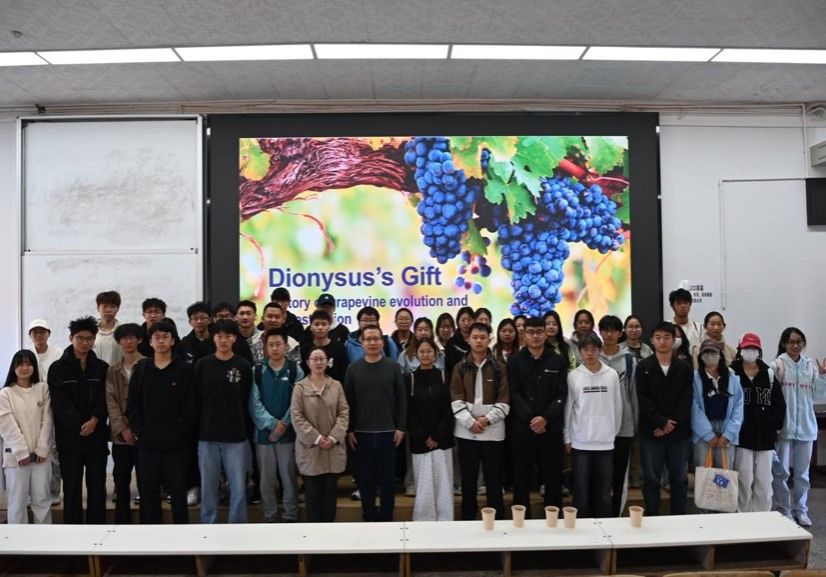 讲座以古希腊神话中的酒神狄俄尼索斯为引,将葡萄的传奇故事与现实世界的葡萄进化与驯化相结合。陈玮教授从遗传学的视角,深入解析了葡萄在历史长河中演变的根本机制,以及人类和环境在其进化和驯化中发挥的重要作用。他详细讲述了葡萄从野生状态到多样化栽培品种的转变,揭示了地球环境变化导致葡萄群体的分化及进化,带领师生们领略了一场穿越时空的葡萄驯化之旅。